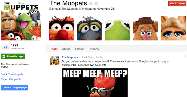 A great feature of Google+ Pages is Direct Connect, which lets users add a Page to their circles by searching +[brand name] on Google. This takes significantly less work than having to visit a Facebook Page in order to Like it. Direct Connect also builds on Google’s dominance in search — something it should exploit in other areas such as email and maps to differentiate its social network.