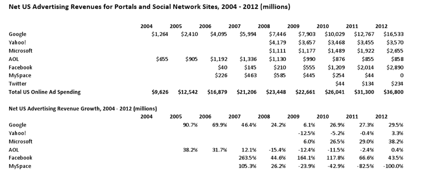 What’s more, in terms of growth in online display advertising, Facebook saw a 66 percent increase this year, far outpacing the rest of the pack. I’ll hold off there, because you probably get the picture. Yahoo has the biggest ad network in terms of revenues and marketshare of this new ad trifecta, which certainly makes this an advantageous partnership for Microsoft and Aol, at least from this perspective.