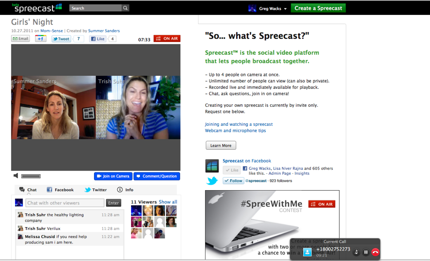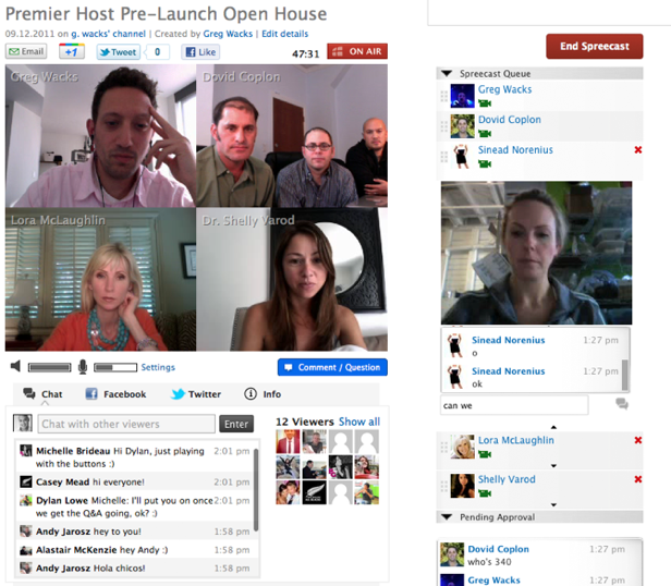 The platform, which has raised angel funding to date, has been in beta for the past two months and has seen a number of use-cases by participants. For example, Olympic gold medalist Summer Sanders used Spreecast to share her thoughts after running the Chicago Marathon. Klout CEO and founder Joe Fernandez announced Klout Insights via Spreecast and Zaw Thet from 4INFO unveiled a $40 million funding round and a spin off company. And a number of radio personalities have Spreecasted with their listeners.