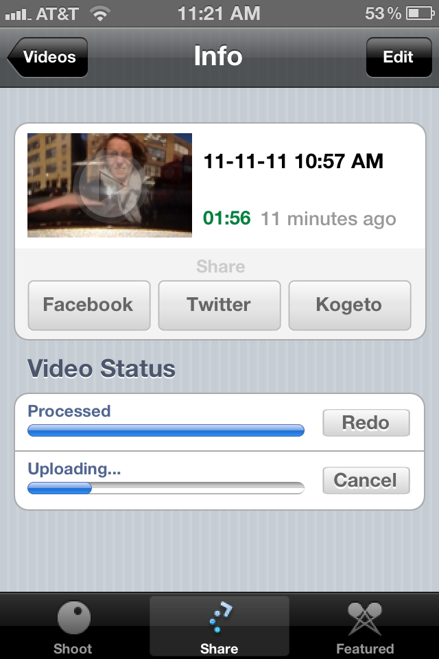 When all’s said and done, yes, the Kogeto Dot has been found wanting in a couple areas. But I got the chance to speak with Kogeto CEO Jeff Glasse who told me that the upcoming update will help fill in those missing pieces. Depending on how quickly Apple approves the update, this is what you’ll be seeing in the next couple weeks: real-time de-warping of video, location services integration, trimming controls, no more 3-minute limit, and possibly the ability to use the volume buttons as stop/start record buttons.