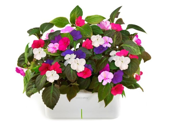 Each flower pot is wired with sensors, a processor and software that checks on the plant and provides it with fertilizer and water as needed. Each pot uses a combination of hydroponics and aeroponics, and still requires an occasional refilling of the water reservoir, about once a month.