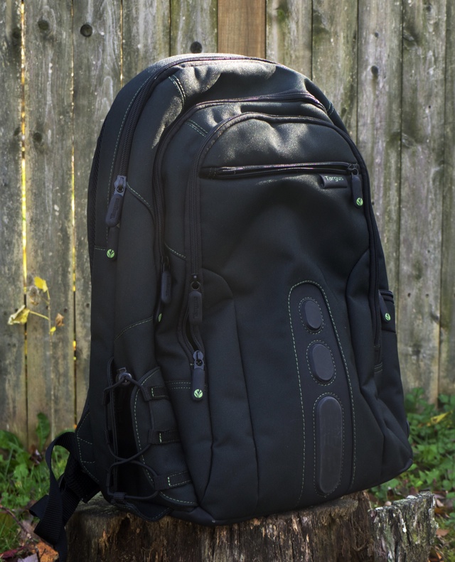 At over 8 inches thick, it doesn’t seem like the Spruce would have much trouble fitting your things, but it’s a tighter squeeze than you think. That’s because Targus felt the need to compartmentalize things a bit too much — the laptop goes in a sleeve that takes up most of one compartment, while the compartment in front of that is where most of your stuff will go. Another smaller compartment sits in front of that, with pockets for pens, ID, and other miscellaneous bits you may want to throw in.