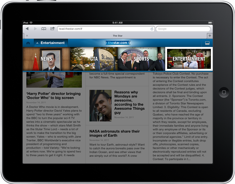 Tablet readers who want to see Pressly in action from their iPad or Android tablet can do so now by visiting read.thestar.com.