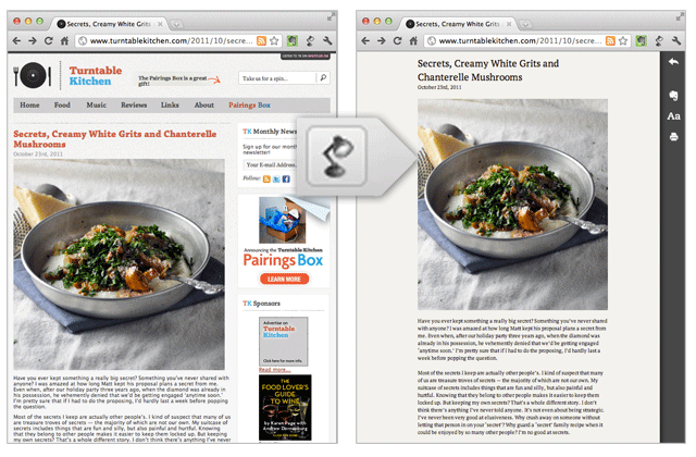 Evernote Clearly works best when you’re on a page with a single article, like this one. With one click, you can isolate the text block for comfortable reading, and ‘slide’ right back when you’re done.