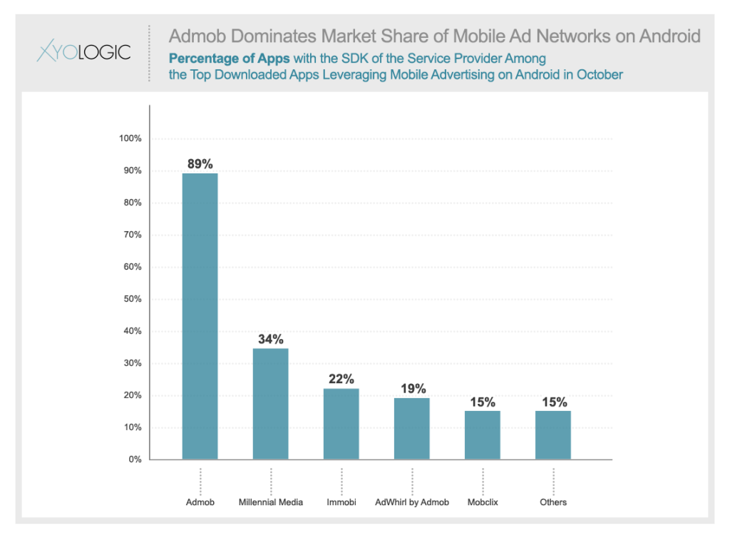 Millennial Media, Inmobi, AdMob acquisition AdWhirl and Mobclix trailed further behind.