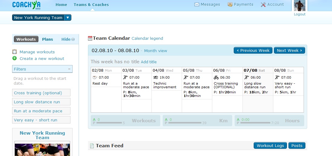 Team management is also made is via a shared calendar and feed and the ability to designate assistant coaches/trainers. Also, athletes can be connected to multiple coaches and teams. For example, someone training for a triathlon may have both running and cycling coaches.