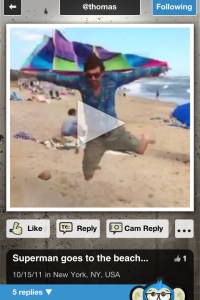 As on YouTube, the app supports video replies to prompt conversations between users. This is done via the “Cam Reply” button at the bottom of each item. (Test replies are also supported).