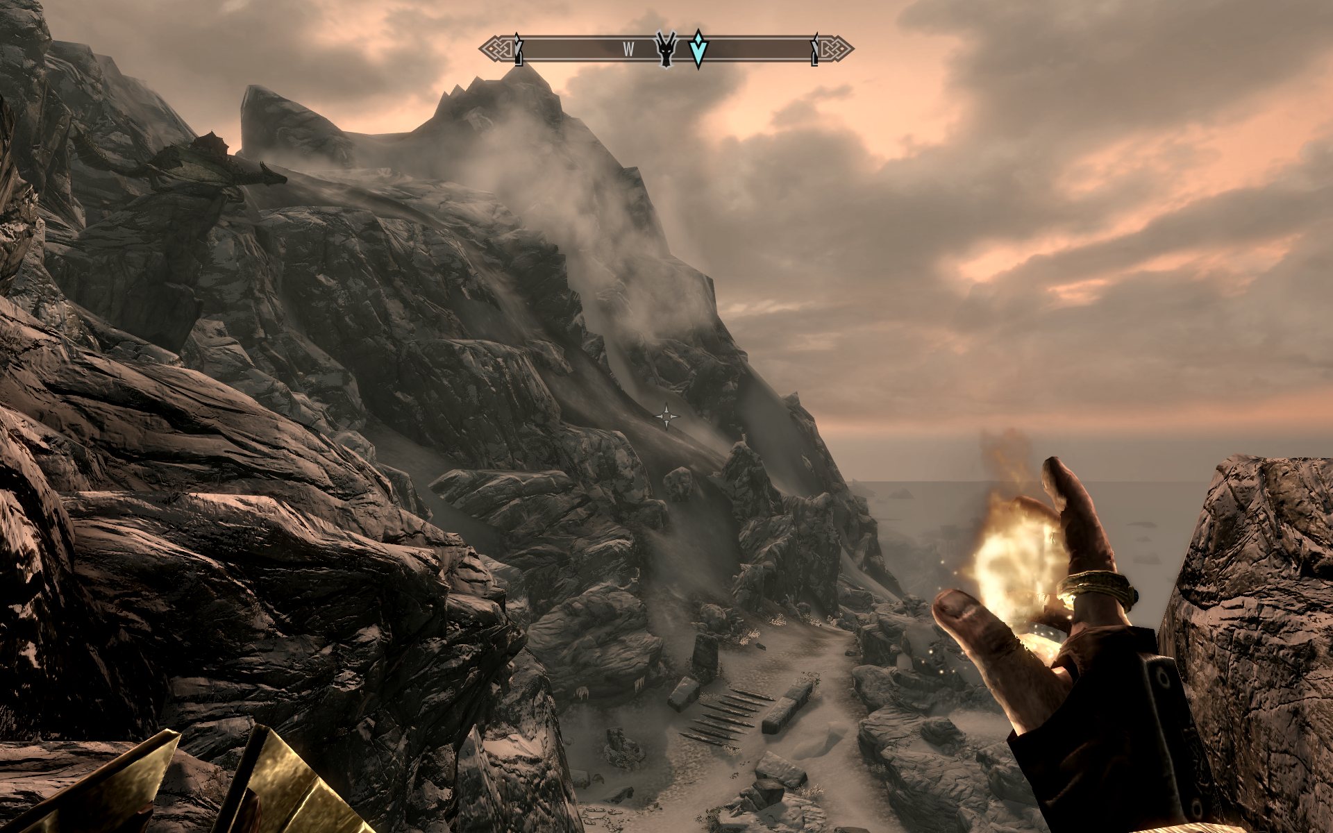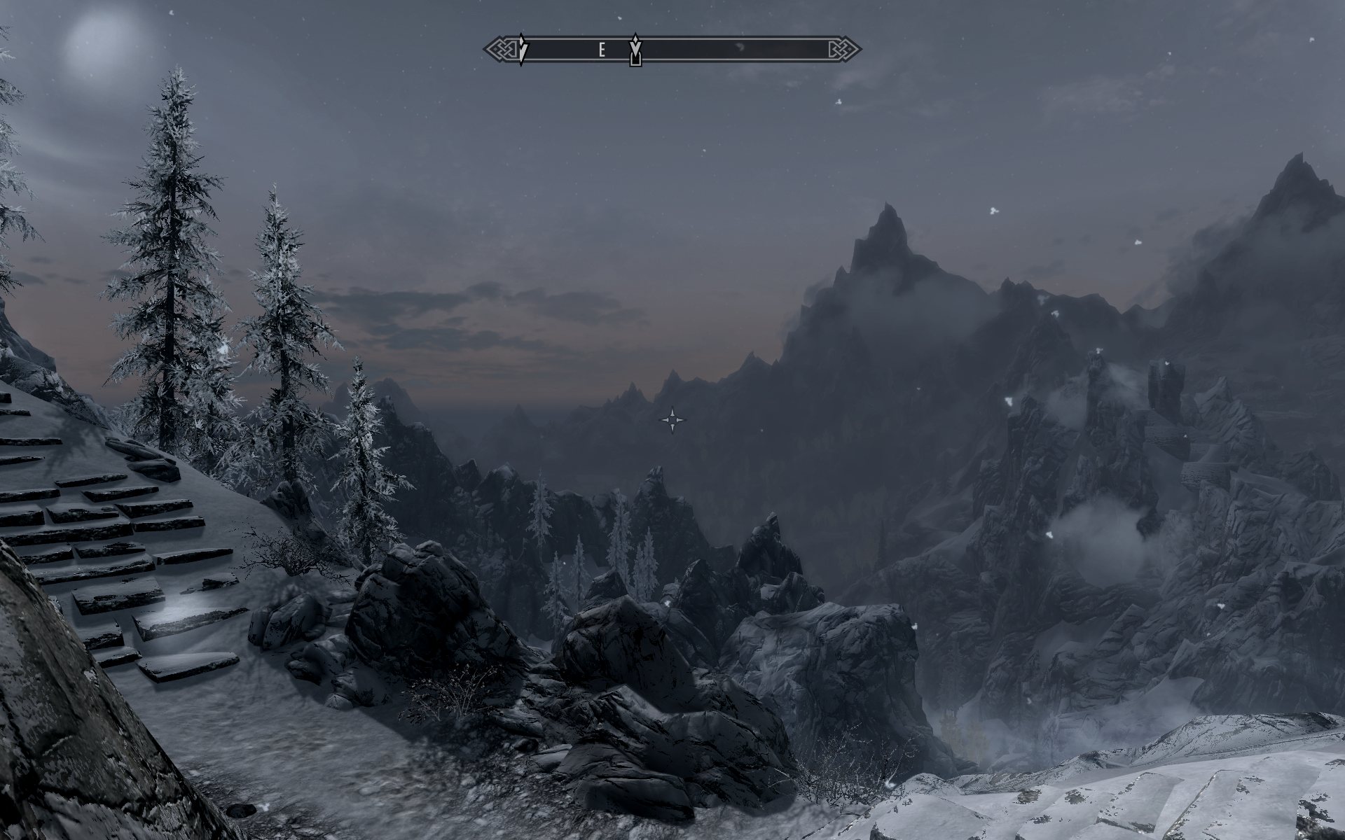 I’ve saved the best for last. The world of Skyrim is the whole reason for playing. The dungeons and caves in Oblivion were disappointingly samey, reusing assets and often entire rooms or buildings. Skyrim… well, first of all, let’s talk about the overworld.