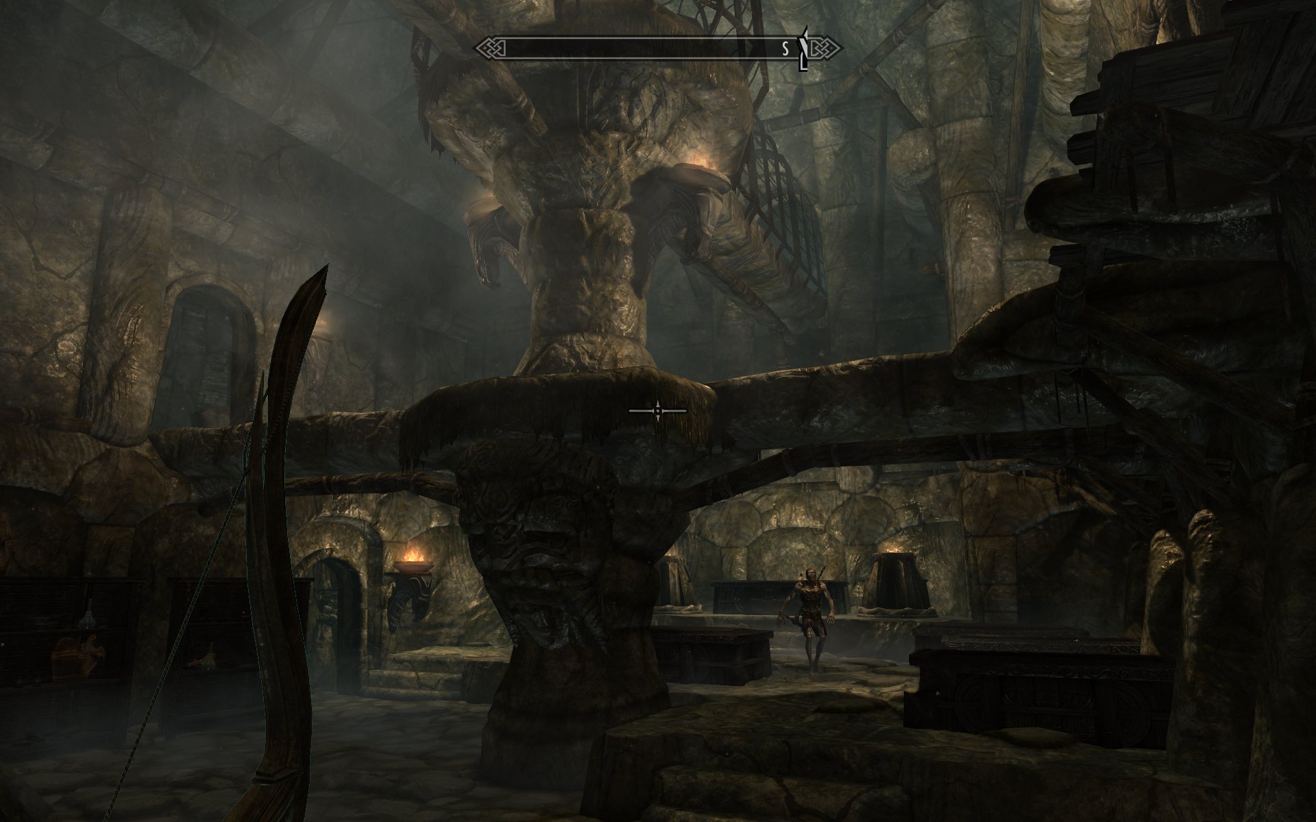 I was complaining to a friend that generally (so far in the game at the time, and under the influence of my previous experience with Oblivion) the caves and dungeons were generally of a medium size, sometimes with a boss, and usually with treasure at the end, and you can get through them in 20 or 30 minutes. At the time that was what I had found in Skyrim, but I’m happy to say that those impressions have been almost totally reversed.