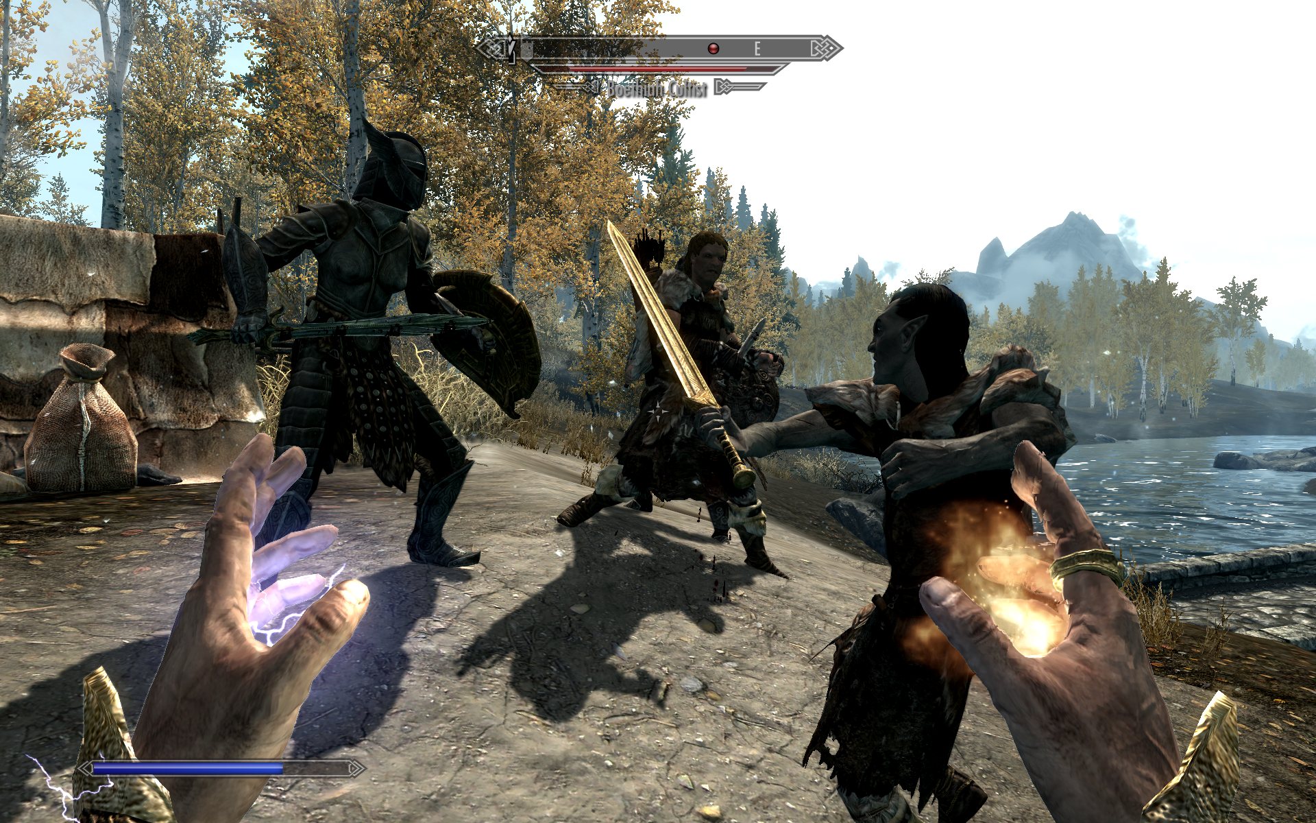 Some changes have been made to the way you fight, and magic is much more practical than it was before. The left/right hand system is great in most situations, allowing you to, for example, have a shield ready while firing lightning at an enemy. Alternately, you could hack away at a mage while keeping a warding spell ready for when they try to magic you.