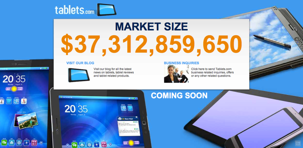 At present, the tablets.com website is hosting a rolling odometer that’s meant to demonstrate how fast the tablets market is growing. As of this morning, it’s in the $37 billion range.