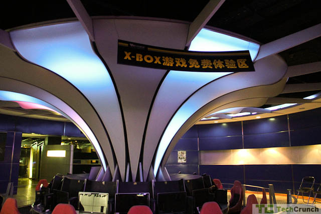 In 2002 Foxconn opened cybercafes for their workers – large, open rooms full of computers and lounge chairs as well as private rooms for couples and folks who want to phone home in a quiet environment. They play movies here and employees can read or nap or, as evidenced by most of the occupied screens, play video games and watch TV.