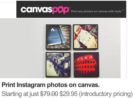 Over 10 million people have created artful iPhonography with Instagram, but they’ve never seen their masterpieces any bigger than a Postagram postcard. But now, thanks to a peculiar synergy between the mediums and a secret algorithm, CanvasPop has found a way to blow up Instagrams and print them as beautiful canvas paintings. See, Instagram’s filters reduce graininess and so does the texture of canvas. This means that even at 20″ by 20″, almost 10x their size on the iPhone, $60 CanvasPop prints look wall-worthy.