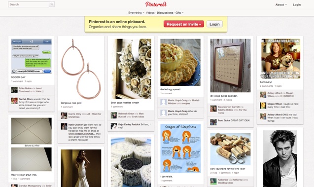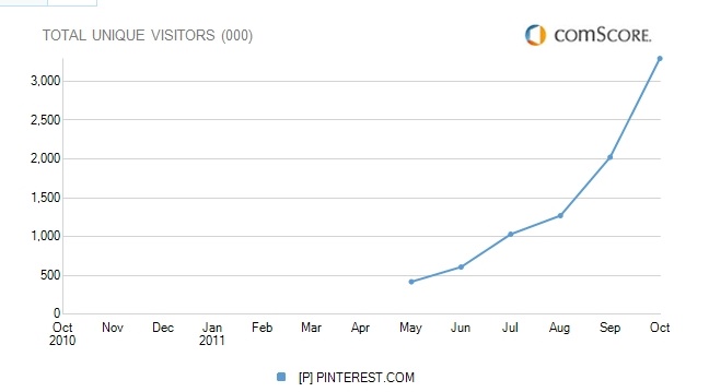 All of those pageviews are coming from a relatively small number of users. In October, Pinterest had an estimated 3.3 million unique visitors in the U.S., up more than fourfold since June when it was at 608,000. On average, each person on Pinterest generates 128 pageviews a month (a number which will no doubt come down). It doesn’t yet have many users, but they are addicted to the service, which encourages you to “repin” other people’s image-heavy Web clippings (which is like reblogging on Tumblr and similarly generates a ton of internal pageviews as people jump from pinned image to pinned image).