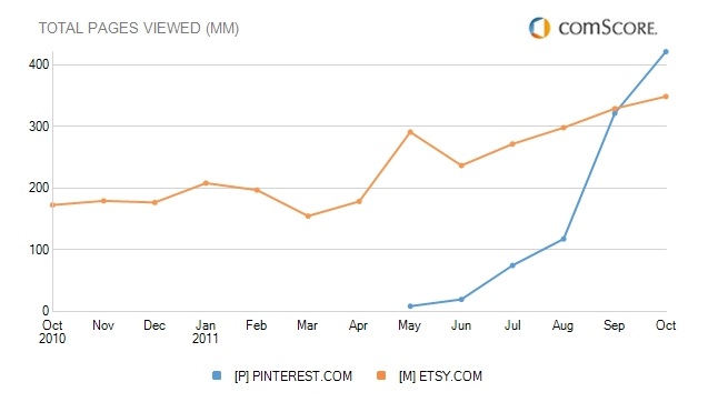 Update: These numbers are just estimates from comScore,and as such are not perfect. But at least they are apples-to-apples. Etsy says its internal metrics show 1.2 billion pageviews in October. Pinterest does not disclose its internal numbers.