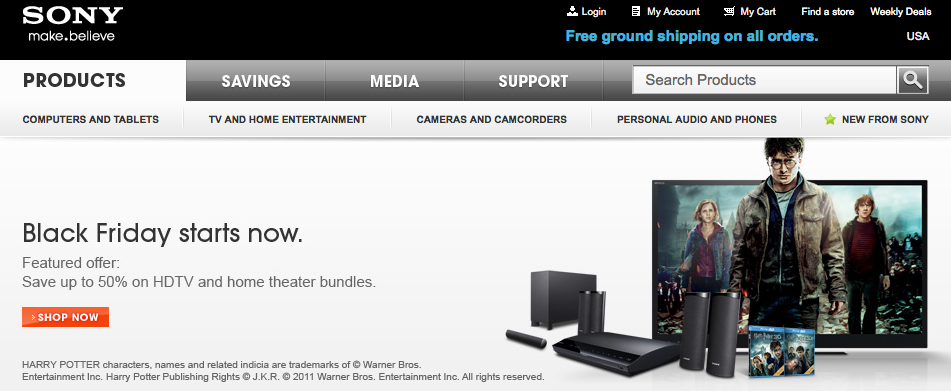 First up we have a couple amazing bundles, including home theater bundles for Sony’s 46 and 55-inch NX720 Internet HDTV, a 3D Home Theater system, and a copy of Harry Potter and the Deathly Hallows movies. You’ll have to pay $1399.99 for the 46-inch bundle and $1699.99 for the 55-incher, compared to original pricing of $2599.99 and $3399.99 respectively. Sony is also hooking up customers with a 320GB Sony PS3 Move bundle at the low price of just $349. The bundle includes a 320GB PS3 (obviously) a DUALSHOCK 3 wireless controller, a PlayStation Move controller, the PlayStation Eye camera, and Sports Champions.