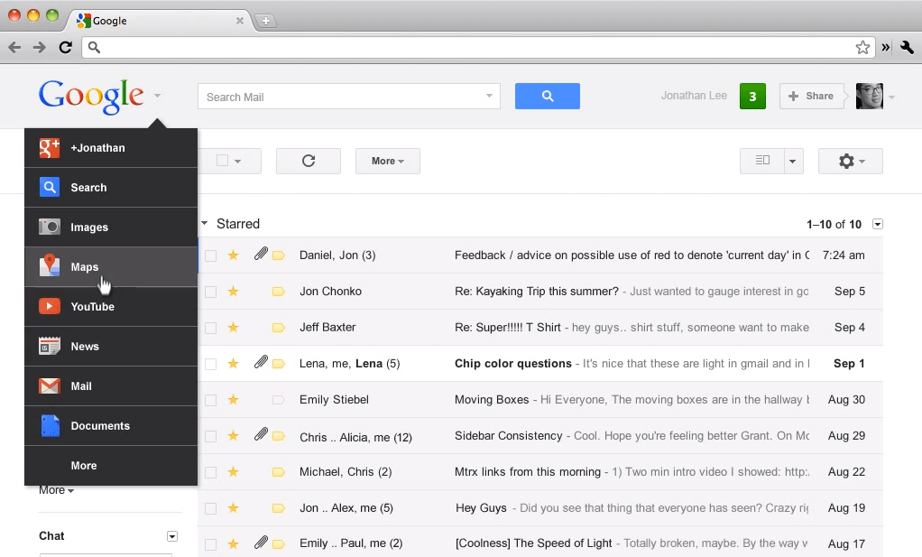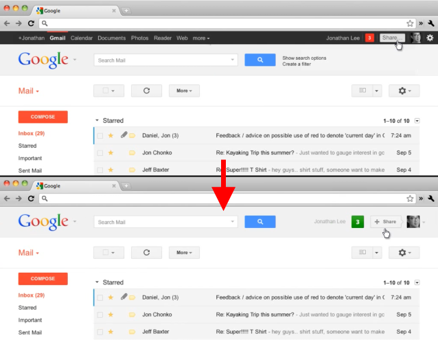 That meant a bit of a makeover for the Google search page, as the company added a black nav bar at the top of the page (kind of similar to to Drupal’s top bar, no?), a smaller logo, with links moving both to the top and bottom edges of the browser window. Google was after a cleaner, more simplified look — for all of its products. The changes were seen across Search, Maps, Translate, and later Reader (boo, hiss), and even Gmail (meh).