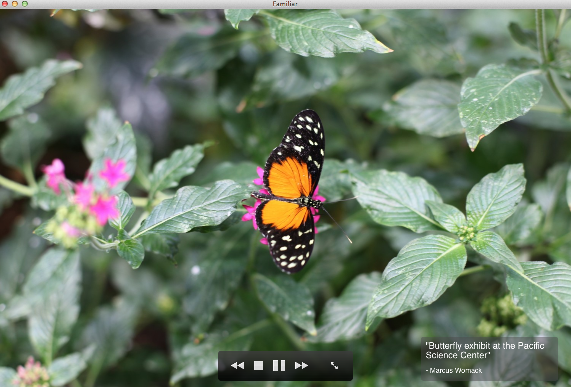 After Familiar users have built up a palatable collection of photos, they can go to Familiar ‘Preferences’ and decide whether to use ‘The Shuffle’ as their screensaver and/or ‘Photos I Love’ (which they can designate by clicking the ‘<3’ button on each photo) as their desktop background. They can also adjust the volume on various friends by using a Less/More slider.