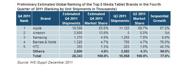 To put this 3.9 million number in context, just remember that the very first quarter Apple sold the iPad back in the September quarter of 2010, it sold 3.3 million. So the Kindle Fire sold more in its first quarter than the iPad did in its first quarter on the market. Of course, Apple sold 7.3 million iPads the second quarter it was on the market, which was the 2010 holiday quarter.