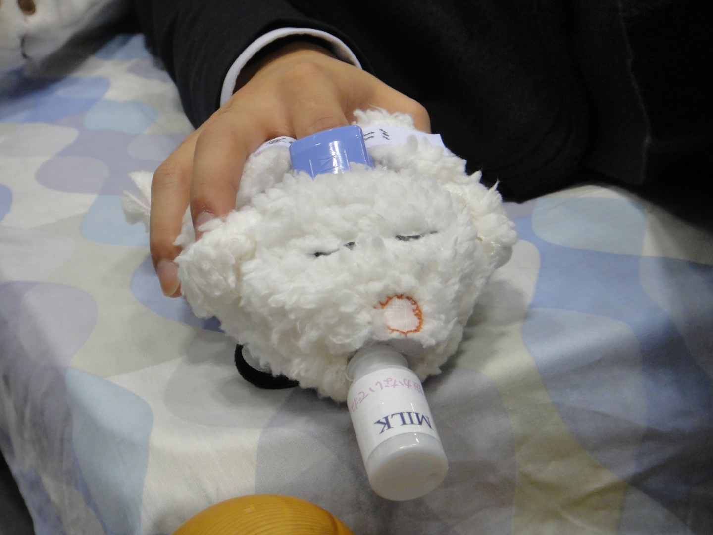 In this system, a pulse oxymeter, worn on the finger, measures oxygen concentration in the blood. Also, a microphone in the teddy bear picks up the sound of snoring. The data from these two devices is evaluated by a PC, and reflected in the signal sent to an actuator, so the actuator movement can be varied depending on the person’s condition. The actuator movement helps the person roll over in their sleep, and if their breathing is badly interrupted, it wakes the person up.