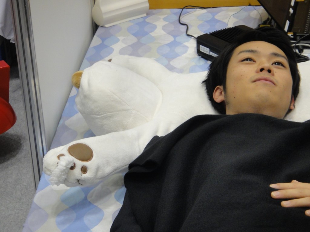 This video, shot by Diginfo TV (in English), shows the robot pillow in action: