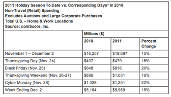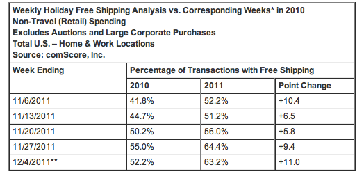 comScore says that in past years Free Shipping Day has helped boost online spending activity later into the season. Last year’s Free Shipping Day, for example, was the third heaviest online spending day of the year at $942 million, a 61 percent increase from 2009.