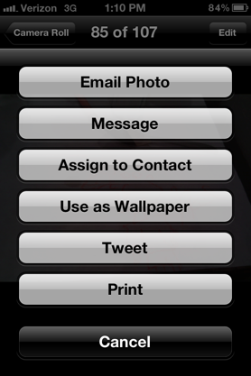 Some applications feature Dropbox integration that will let you save straight to your account, but these integrations are all hardwired on a per-app basis. Which means you can’t assume they’ll be there. And it also means that if you’re fond of a service that’s less popular than Dropbox — one that third-party apps probably aren’t going to go to the trouble to integrate themselves — then you’re going to be totally out of luck. But hey, at least you can tweet about it! (see screenshot at right for the iOS sharing choices).