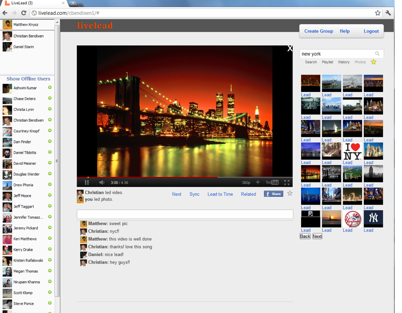 In terms of individual features, LiveLead allows you to sync videos so that everyone is watching at the same point in a video or slideshow. You can also find a specific instance of the video that you want to share with your friends, and fast forward to that part of the video. Everyone’s computer will instantly start playing the video at the desire point.