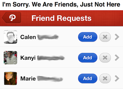 That means you have to undertake the socially awkward experience of rejecting requests from your co-workers, acquaintances, and fellow early adopters, and make sure not to put them in the same position. You may have already let some loose acquaintances into your inner circle or have outstanding requests from Path 1, and will need to go in and remove them. I’ve received a dozen Path friend requests from people I’m hardly comfortable sharing my Facebook posts with, let alone my sleeping habits. This indicates a widespread lack of understanding of Path that the company will need to address.