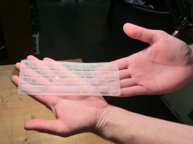 So then I started thinking about how to make typing on an iPad great. And there was only one answer: add a tactile layer on top of the on-screen keyboard. Let people feel where the keys are; make typing comfortable (my fingers already hurt from banging away on the glass).