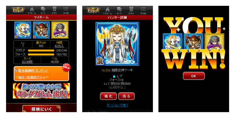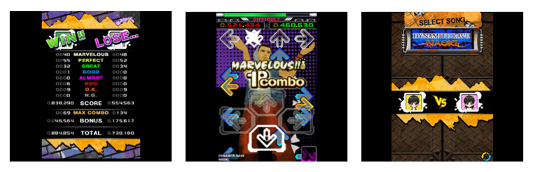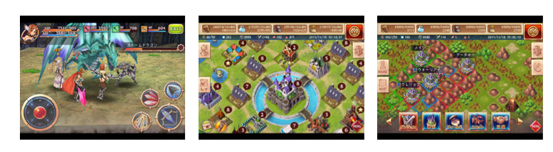 Here are screenshots for Konami’s Dance Dance Revolution, GREE’s RPG doliland, and GREE’s fantasy strategy game Dragon Ark (from top to bottom):