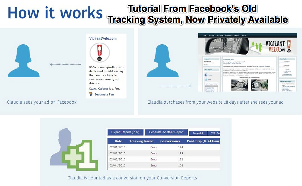 Facebook’s 2010 conversion tracking beta experiment allowed advertisers to create their own tracking pixels through the Ads Manager, and then paste them into the code of their websites. The system was discontinued because advertisers apparently found it too confusing to use, leading them to miscalculate their ROI and get an inaccurately poor impression of the performance of Facebook ads.