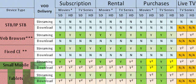 It will stream in SD or HD to all of these devices, and local storage of video will be enabled for mobile devices and tablets. It is still in talks with content providers and will be following their lead on blackouts and release timing; this won’t be a quick-release channel for new movies or live TV, for instance.