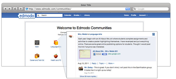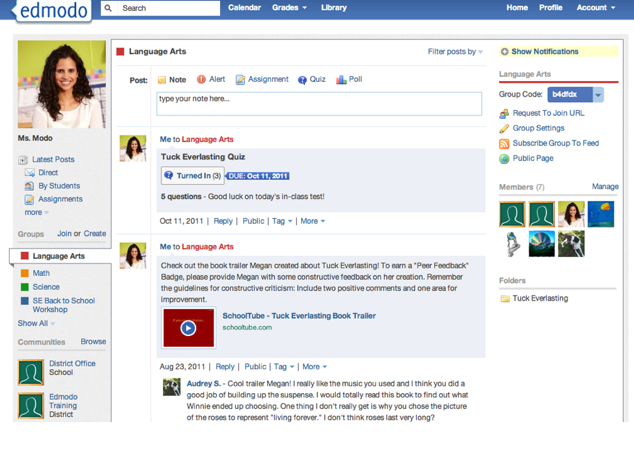 Teachers can share educational content, manage projects and assignments, handle notifications, conduct quizzes and events, and facilitate other engaging learning experiences with students. Schools and districts can claim unique Edmodo web addresses for added communication and customization. And teachers can build profile pages on Edmodo, which they use to meet and stay in contact with other educators, sharing best practices and top resources.