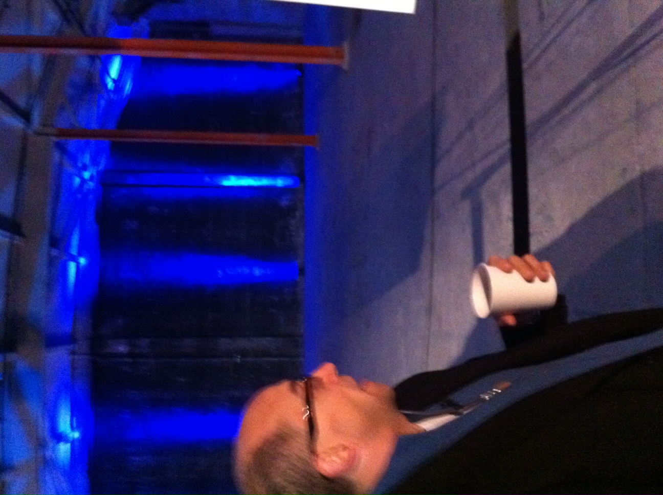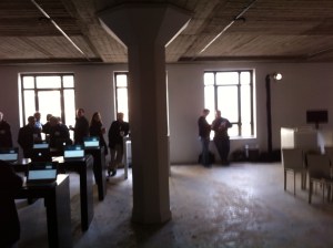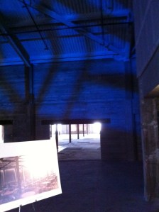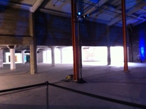 Hopefully the event isn’t just a building tour, although I have to say the company has made their sections of this old furniture warehouse are starting to look nice. The floor is still pockmarked concrete, presumably left over from the days when this was a furniture warehouse. But the windows have sleek new frames. And a cavernous middle section of the floor is all lit up in blue lights, with a fancy illustration of what it’ll look like one day in the middle.