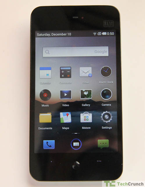 The phone will get an Ice Cream Sandwich update in the next few weeks (at least according to Meizu) and the current os, a modified Android 2.3.5 called Flyme, is a strange departure from the standard experience. For example, there is no clear “apps” screen and instead apps appear on the “desktop,” much like another phone we all know and love.