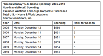 Free Shipping day is also this week, which is a marketing event that takes place Friday, December 16, and is also one of the last days when merchants offer free shipping with delivery by Christmas Eve. comScore says that in past years Free Shipping Day has helped boost online spending activity later into the season. Last year’s Free Shipping Day, for example, was the third heaviest online spending day of the year at $942 million, a 61 percent increase from 2009.