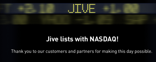 Social enterprise giant Jive Software started trading this morning on the Nasdaq under the symbol ‘JIVE.’ The company priced its IPO last night at $12 per share, giving the company a $600 million. -plus valuation. Jive originally set the range between $8 and $10 per share. This morning Jive opened at $15.12 per share, up 27 percent from its pricing. At $15.12, Jive would be valued at over $800 million.