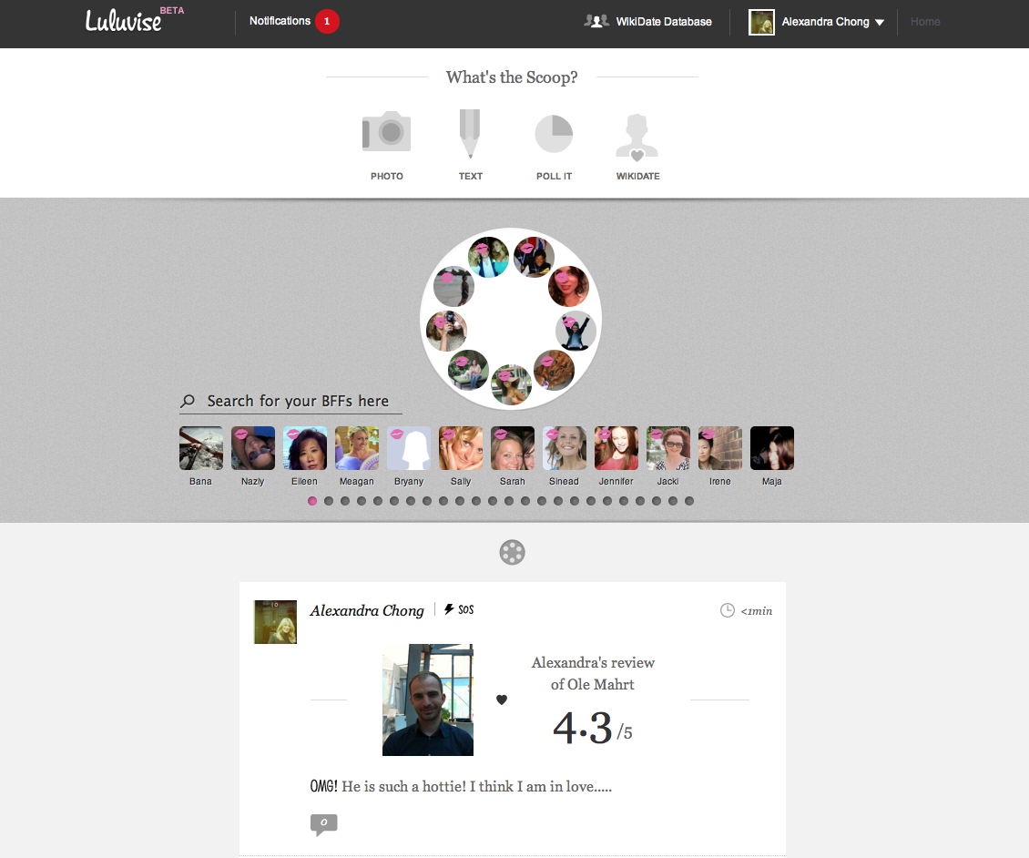 And apparently a lot of guys want in. “We had a lot of guys submitting their emails to get access to the beta, and we must have sent out over 500 emails telling them Luluvise is for ladies only,” said Chong.