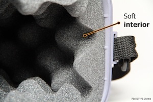 The outside is hard molded plastic, the inside is soft foam, and there’s a nice big water seal and latch to keep the dew out. It should withstand getting hit by rocks, dropped on the trail, and possibly the werewolf thing too. It even floats, so it can get away from vampires (they can’t cross running water).