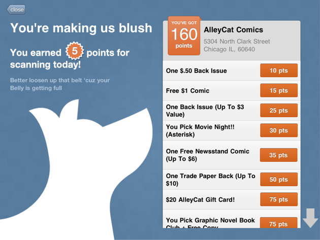 Currently rewards at businesses range from a comic book store that offers customers a chance to punch the owner in the stomach, to a bakery that rewards customer 10 minutes all you can eat cupcakes. You can arm wrestle a sandwich restaurant owner or ride along in a food truck that will let its best customers “egg” the truck as it drives by. Belly works closely with each individual business to ensure the rewards are unique and personalized to that business.