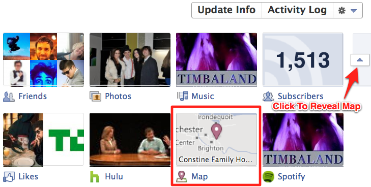 To access Map, visit your Timeline, which you can enable here. Below the Update Info and Activity Log buttons and next to to your Friends, Photos, and other Timeline View tiles is a drop-down arrow with a number. Expand this menu and click “Map”. To navigate to Map directly, you can add ” /map ” to the end of your profile’s URL in this format “http://www.facebook.com/[Your User Name or Profile ID]/map”. To alert people to the feature, Facebook is currently showing news feed stories about friends who’ve updated their maps, and Map can be viewed from mobile thanks to Bing.