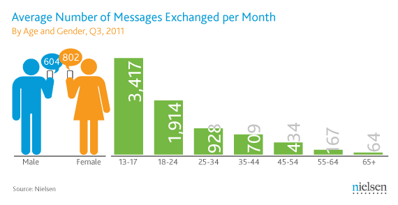 The report states that “In the third quarter of 2011, teens age 13-17 used an average of 320 MB of data per month on their phones, increasing 256 percent over last year and growing at a rate faster than any other age group”.