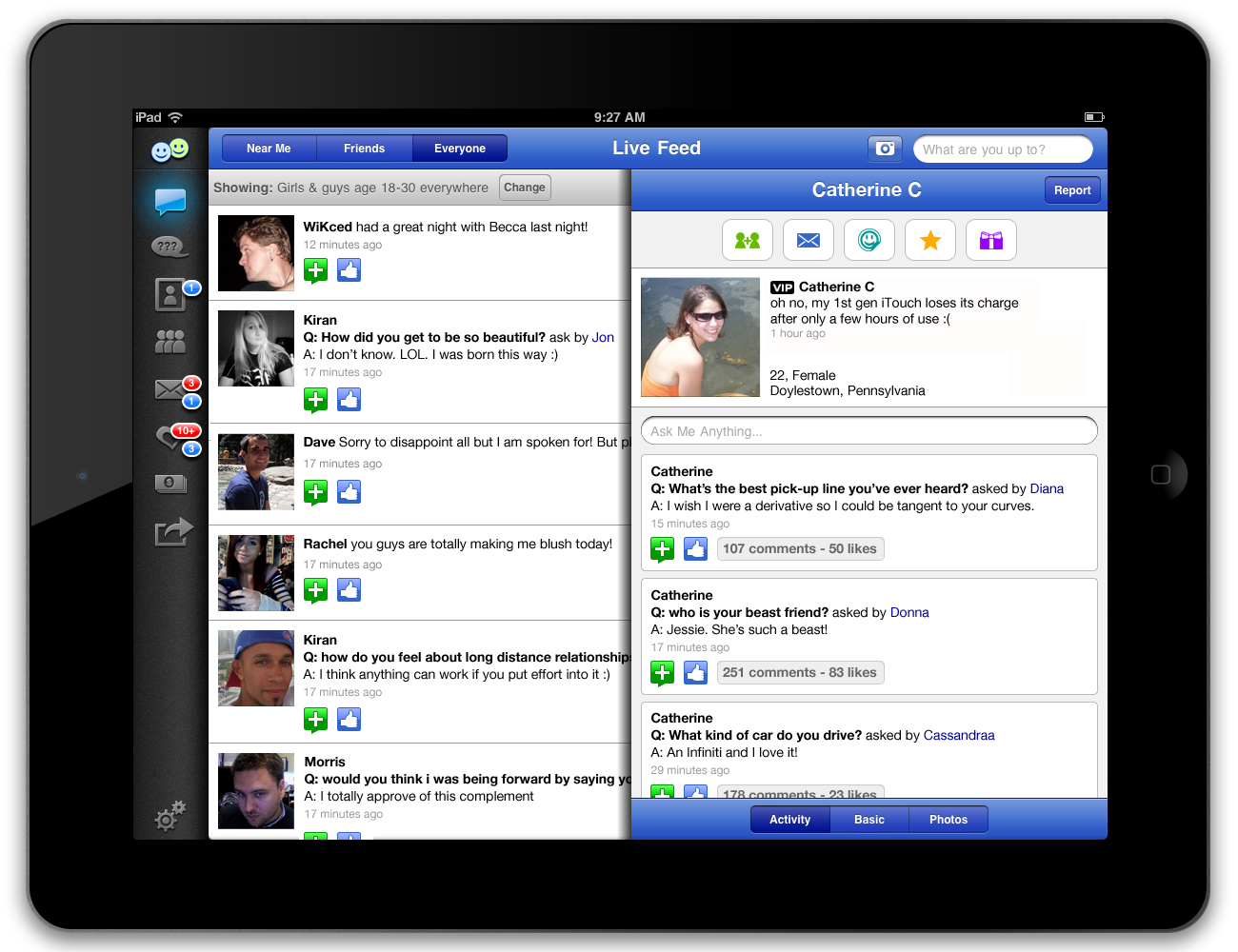 The new iPad app, which you can download here, improves on the existing mobile interfaces by adding a multi-pane interface for doing things like flipping through profiles while using specific features like apps.