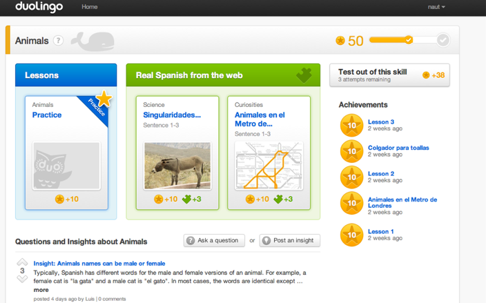 From the learner’s standpoint, Duolingo provides the ability to learn a language in exchange for translating copy. So if you are looking to learn Spanish, Duolingo will give some easier sentence to translate, and you can translate the sentences in Spanish into English. If you don’t know a given word, you can hover over it to get the translated word. The more you learn, the more complicated the translations are, says von Ahn.