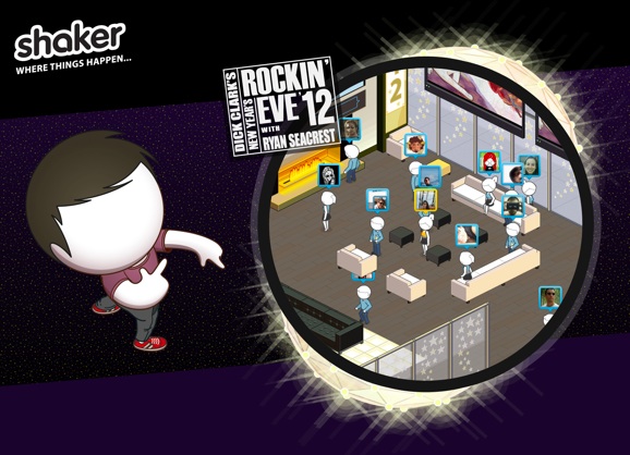 TechCrunch Disrupt winner Shaker is already getting ready for New Year’s Eve. The Facebook app creates 3D virtual rooms where you can party with your friends and meet new people. The startup is partnering with Dick Clark Productions to create a virtual loft where a pre-party will take place right before the “Dick Clark’s New Year’s Rockin Eve with Ryan Seacrest 2012” show begins.