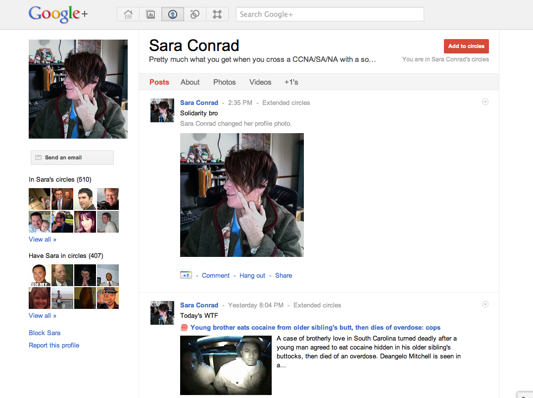 To actually remove someone’s photo because of such a culturally-specific constraint (a gesture indicating what, exactly?) is absurd. What’s more absurd is that the protocol is hard to scale; It’s easy to track what MG Siegler is up to with his avatar because he’s so visible. I’ve been subtly flipping people off on Google+ all day, and my pic is still up, though it might not be after this post.