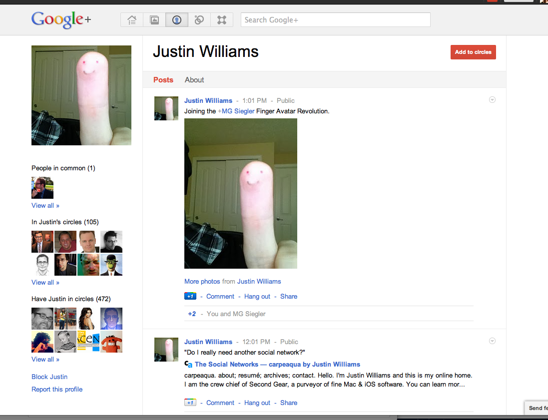 Something’s gotta give Google. Can you really, truly argue that a middle finger is that universally offensive? And if anything it’s “immature” content. Already a good number of Google+ users have changed their pics in homage to Siegler (Hey, it’s an easy and surprisingly satisfying fight).