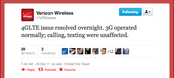 Each outage becomes harder and harder to swallow, if only because Verizon has never revealed the cause of these issues. It’s especially frustrating because Verizon’s big 4G promotional push was intended to get as many customers up and running on their LTE network as soon as possible. They wanted to preserve the quality of service for customers with 3G-only devices, but I can’t help but wonder if Verizon’s plan was a bit too successful. I’ve reached out to Verizon for a comment, but haven’t heard anything yet at time of writing — we’ll keep you posted on the situation.