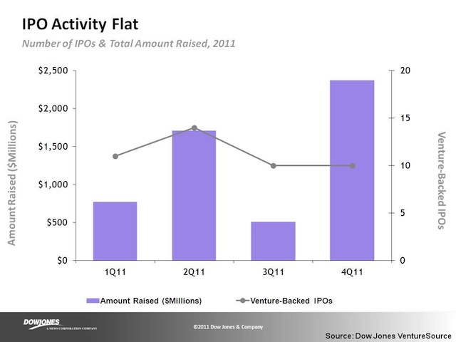 The median amount of venture capital raised prior to an IPO rose 17 percent (to $85 million) in 2011.